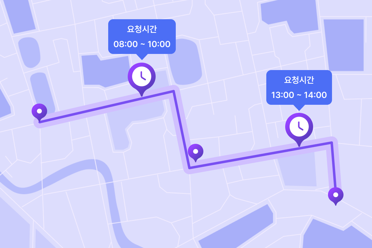타임윈도우 및 교차 금지 구역을 반영하여 최적의 배차 경로를 제공합니다.