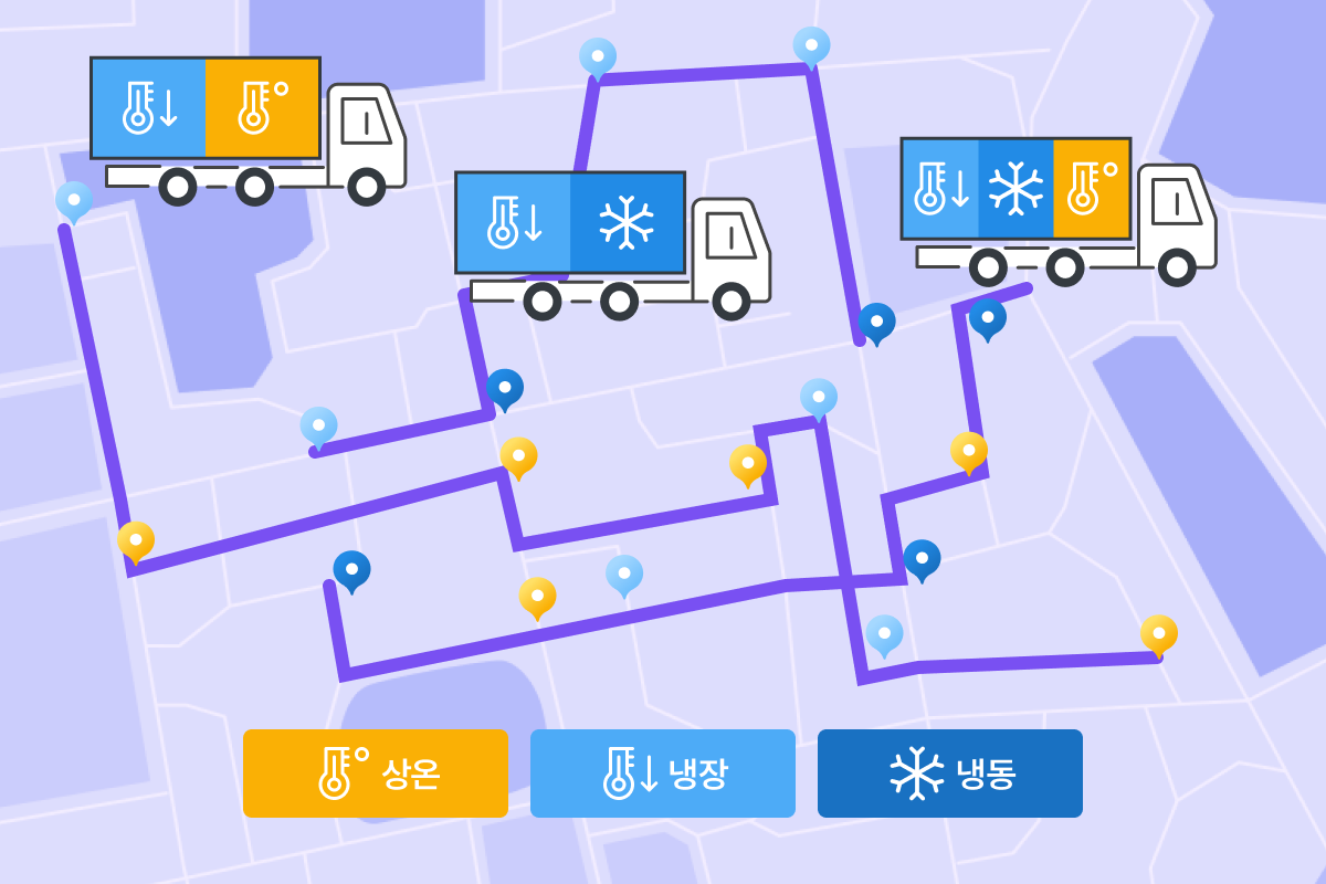 상온, 냉장, 냉동에 따라 해당 차량을 배정하는 배차