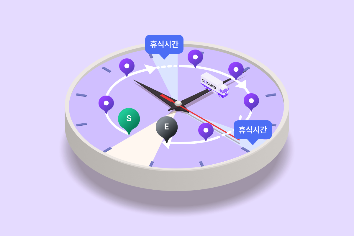운전자 업무 시간을 설정하여 법규 준수 및 피로 관리 및 기사별 휴식 시간을 반영해 업무 시간 조율